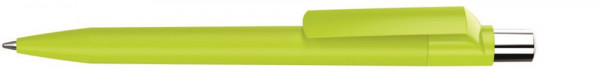Druckkugelschreiber mit Softtouch-Schaft, gedeckt glänzendem Clip, silber glänzendem Drücker mit farbigem Stopfen.