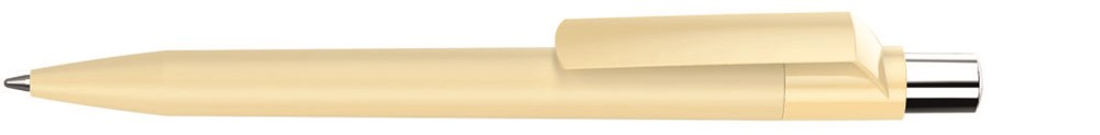 Druckkugelschreiber mit Softtouch-Schaft, gedeckt glänzendem Clip, silber glänzendem Drücker mit farbigem Stopfen.