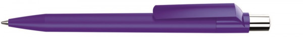 Druckkugelschreiber mit Softtouch-Schaft, gedeckt glänzendem Clip, silber glänzendem Drücker mit farbigem Stopfen.