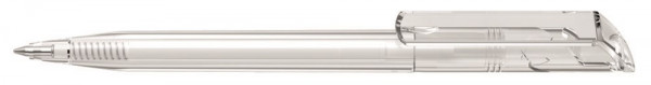 Drehkugelschreiber mit transparent glänzendem Gehäuse und massivem Clip.