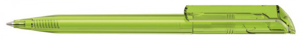Drehkugelschreiber mit transparent glänzendem Gehäuse und massivem Clip.
