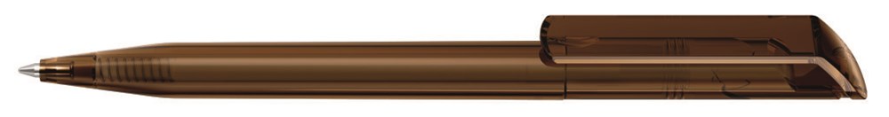 Drehkugelschreiber mit transparent glänzendem Gehäuse und massivem Clip.