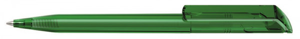 Drehkugelschreiber mit transparent glänzendem Gehäuse und massivem Clip.