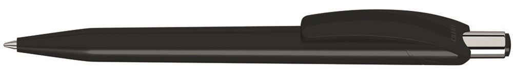 Druckkugelschreiber mit glänzend gedecktem Gehäuse und Drückerstopfen. Drücker in silber glänzend. Minentype: uma Economy Jumbo Refill Minenfarbe: blau