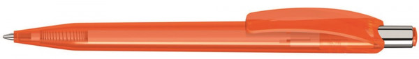 Druckkugelschreiber mit glänzend transparentem Gehäuse und Drückstopfen, Drücker in silber glänzend.