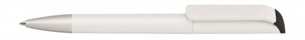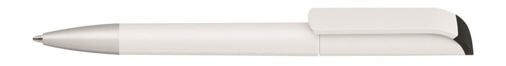 Drehkugelschreiber mit gedeckt mattem Gehäuse in weiß mit farbig glänzendem Stopfen und silber matter Spitze. Ab 2.000 Stück kann das Modell farblich kombiniert werden.