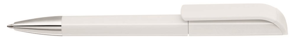 Drehkugelschreiber mit gedeckt glänzendem Gehäuse in weiß mit farbigen Stopfen und Spitze glanzverchromt. Ab 2.000 Stück kann das Modell farblich kombiniert werden.