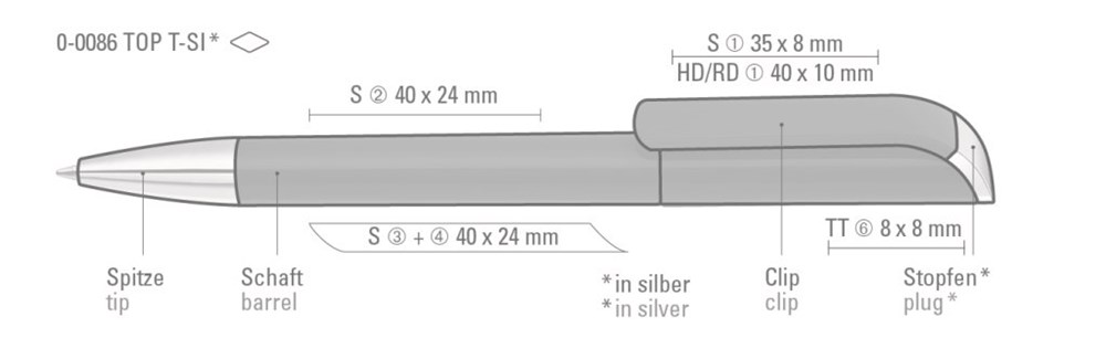 Veredelung: Siebdruck auf dem Clip (35x8 mm) 1-Farbig