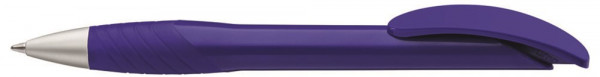 Druckkugelschreiber mit uni gedeckt glänzendem Gehäuse, ergonomischer Gummigriffzone, Bogenclipdrücker mit Metallspitze mattchrom.