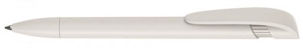 Druckkugelschreiber mit matt gedecktem Gehäuse und Spitze, mit breitem Bogenclipdrücker.