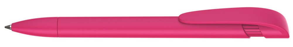 Druckkugelschreiber mit matt gedecktem Gehäuse und Spitze, mit breitem Bogenclipdrücker.