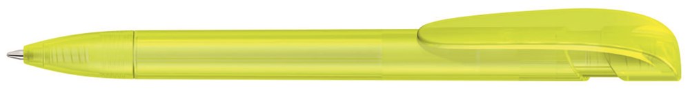 Druckkugelschreiber mit transparent gefrostetem Gehäuse, Spitze und breitem Bogenclipdrücker.