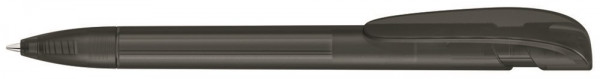 Druckkugelschreiber mit transparent gefrostetem Gehäuse, Spitze und breitem Bogenclipdrücker.