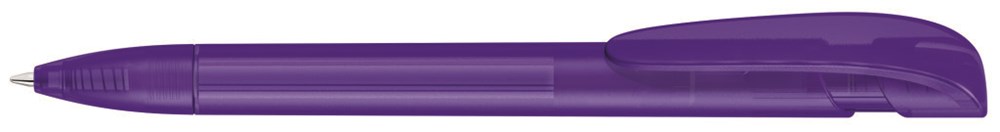 Druckkugelschreiber mit transparent gefrostetem Gehäuse, Spitze und breitem Bogenclipdrücker.