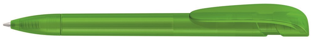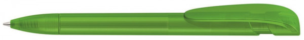 Druckkugelschreiber mit transparent gefrostetem Gehäuse, Spitze und breitem Bogenclipdrücker.