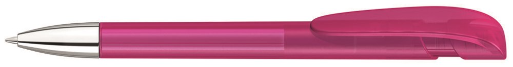 Druckkugelschreiber in uni transparent gefrostetem Gehäuse, breitem Bogenclipdrücker und silberner Spitze glanzverchromt.