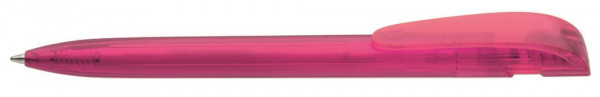 Druckkugelschreiber in unifarbenem, transparentem Gehäuse mit breitem Bogenclipdrücker.
