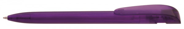 Druckkugelschreiber in unifarbenem, transparentem Gehäuse mit breitem Bogenclipdrücker.