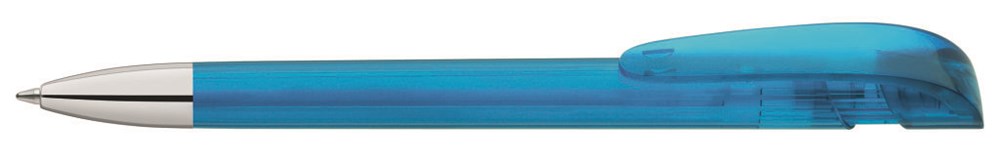 Druckkugelschreiber in uni glänzend transparentem Gehäuse mit schwerer Metallspitze glanzchrom, mit breitem Bogenclipdrücker.