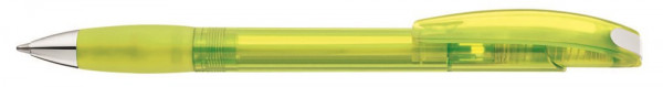Druckkugelschreiber mit uni transparent glänzendem Gehäuse und gepolsterter Softgriffzone mit Clipdrückermechanik. Drückerstopfen und Spitze silber glänzend. Ab 2.000 Stück können alle Teile miteinander kombiniert werden. Minentype: uma Jumbo Refill Minenfarbe: blau