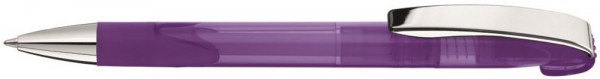 Druckkugelschreiber mit transparent glänzendem Gehäuse, schwerer Metallspitze, Metallclip glanzverchromt und Gummigriffzone.