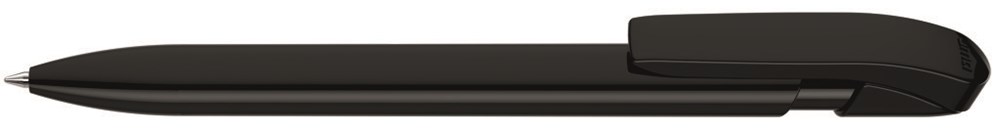 Druckkugelschreiber mit gedeckt glänzendem Gehäuse in uni weiß oder schwarz bzw. Manschette in transparent glänzend.