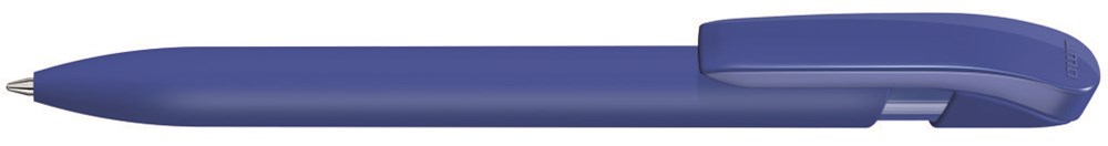 Druckkugelschreiber mit gummiertem Gehäuse und Manschette, Clip und Cliphals gedeckt glänzend.