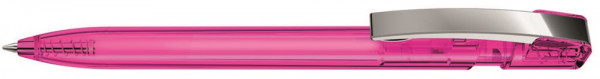 Druckkugelschreiber mit transparent glänzendem Gehäuse unifarben, Metallclip glanzverchromt.