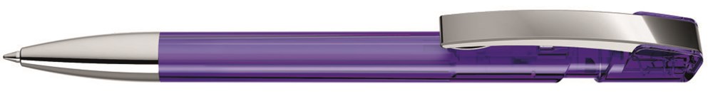 Druckkugelschreiber mit transparent glänzendem Gehäuse unifarben, Metallclip und schwerer Metallspitze glanzverchromt.