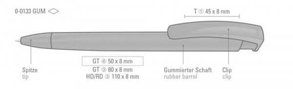 Druckkugelschreiber mit gummiertem Dreikantgehäuse und gedeckt glänzendem Clip. Minentype: uma... mehr