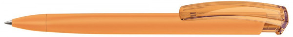 Druckkugelschreiber mit gummiertem Dreikantgehäuse und transparent glänzendem Clip . Minentype:... mehr