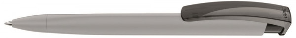 Druckkugelschreiber mit gummiertem Dreikantgehäuse und transparent glänzendem Clip . Minentype:... mehr