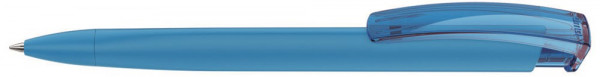 Druckkugelschreiber mit gummiertem Dreikantgehäuse und transparent glänzendem Clip . Minentype:... mehr