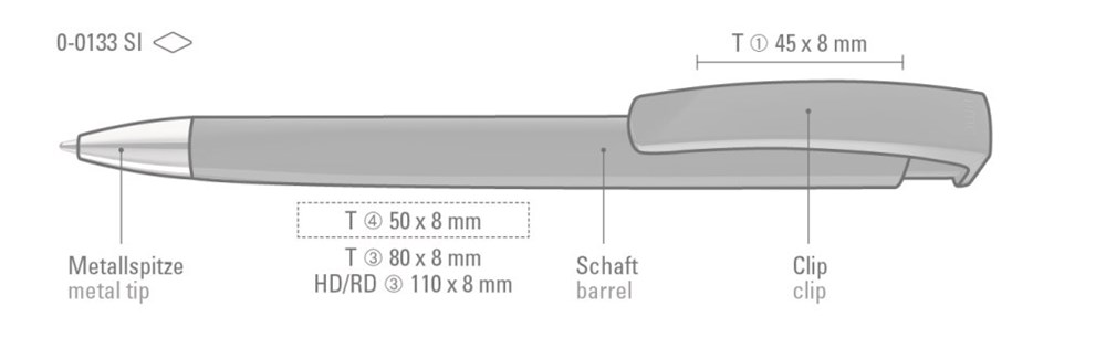 Veredelung: Tampondruck seitlich vom Clip (50x8 mm) 1-Farbig