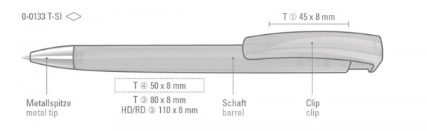 Druckkugelschreiber mit transparent glänzendem Dreikantgehäuse und schwerer Metallspitze... mehr
