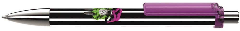 Druckkugelschreiber FASHION KT-SI mit digitalem Folientransferdruck auf dem Schaft, Clip transparent glänzend. Metallspitze und Metalldrücker glanzverchromt.