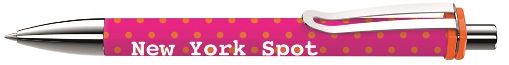 Druckkugelschreiber VOGUE XL SI mit digitalem Folientransferdruck auf dem Schaft und farbiger Clipaufhängung. Breiter Metallbiegeclip, Metallspitze und Metalldrücker glanzverchromt.