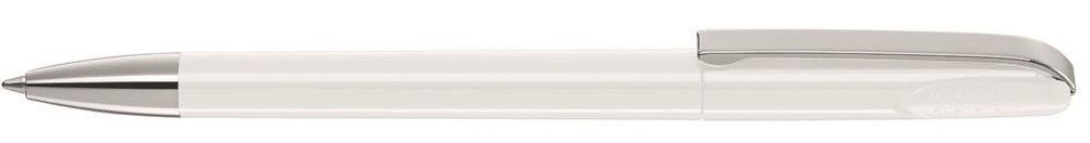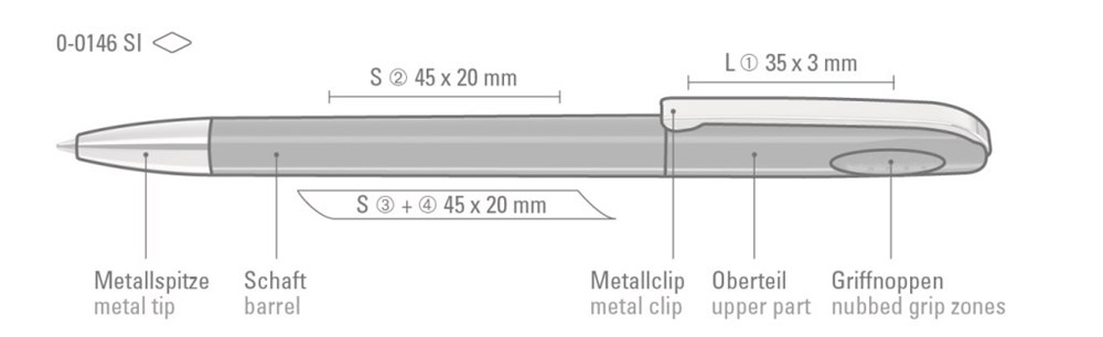 Drehkugelschreiber mit glänzend gedecktem Gehäuse, schwerer glänzender Metallspitze und Metallclip. Griffnoppen in der Kappe unterstützen den komfortablen Drehmechanismus. Minentype: uma Tech Refill 1.0, schwarzes Rohr Minenfarbe: schwarz