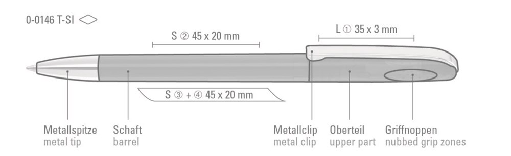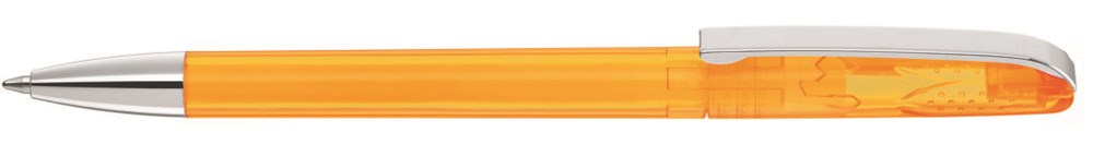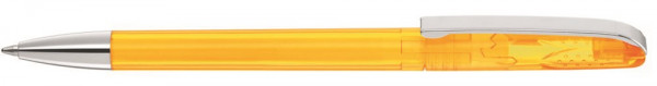 Drehkugelschreiber mit glänzend transparentem Gehäuse, schwerer glänzender Metallspitze und Metallclip. Griffnoppen in der Kappe unterstützen den komfortablen Drehmachanismus. Minentype: uma Tech Refill 1.0, weisses Rohr Minenfarbe: schwarz