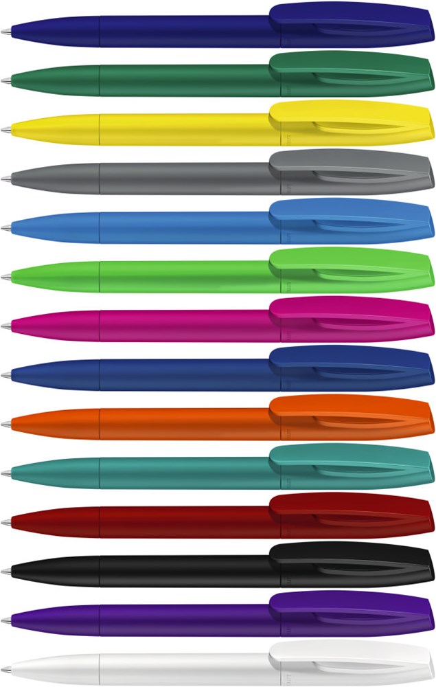 Drehkugelschreiber mit matt gedecktem Gehäuse.