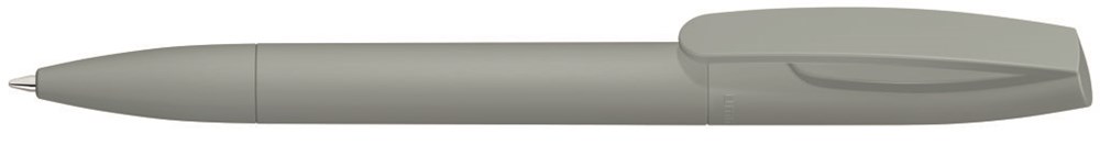 Drehkugelschreiber mit gummiertem Gehäuse und gummiertem Clip.