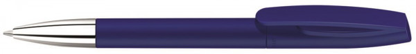 Drehkugelschreiber mit matt gedecktem Gehäuse und silberner Spitze glanzverchromt.