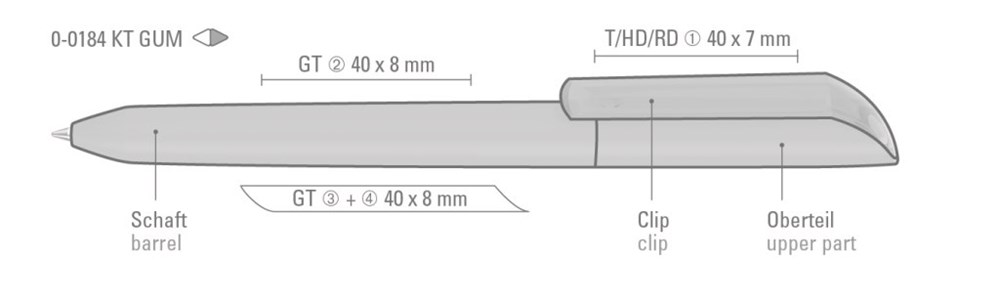 Drehkugelschreiber unifarben mit gummiertem Gehäuse und transparent glänzendem Clip. Ab 2.000 Stück kann das Modell farblich kombiniert werden.