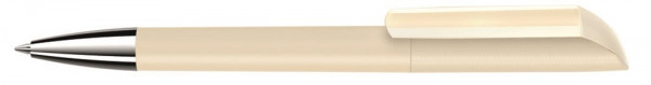 Drehkugelschreiber unifarben mit gummiertem Gehäuse und gedeckt glänzendem Clip. Spitze glanzverchromt.