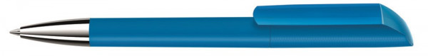 Drehkugelschreiber unifarben mit gummiertem Gehäuse und gedeckt glänzendem Clip. Spitze glanzverchromt.