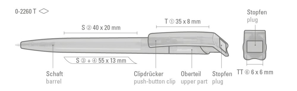 Druckkugelschreiber aus recyceltem rPETMaterial in transparenten Gehäusefarben und gedeckten Stopfen. Die besondere Formgebung des Clipdrückers sorgt dafür, dass Ihre Werbung immer obenauf liegt. Das aus recycelten PET-Flaschen in Europa hergestellte rPET-Material eignet sich für einen langlebigen und nachhaltigen Werbeeinsatz. Dank der europäischen Produktion und dem Einsatz der langschreibenden uma Jumbomine, leistet der uma RECYCLED PET PEN einen zusätzlichen nachhaltigen Beitrag zur Schonung der Umwelt. Das Modell wurde mit dem Sustainability Award ausgezeichnet und für den Deutschen Nachhaltigkeitspreis nominiert.