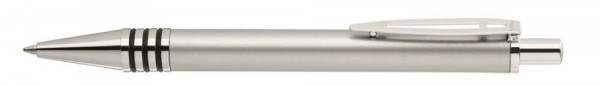 Metall-Druckkugelschreiber mit 3 eingelassenen, kombinierbaren Gummiringen im Schaft. Glanz lackierter Aluminiumschaft, Beschläge in Metall glanzchrom.