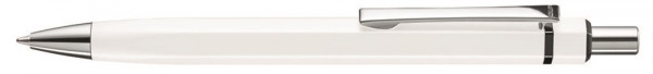 Metall-Druckkugelschreiber mit farbigem matt lackiertem, sechskantigem Aluminiumschaft. Metallclip, Metallspitze und Drücker in silber glänzend. Zierring in schwarz glänzend.