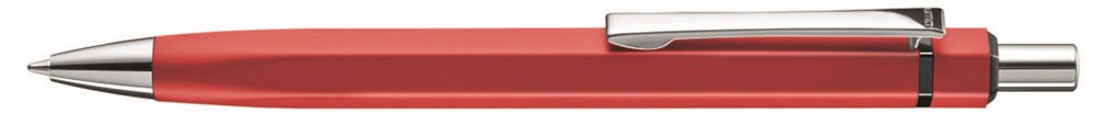 Metall-Druckkugelschreiber mit farbigem matt lackiertem, sechskantigem Aluminiumschaft. Metallclip, Metallspitze und Drücker in silber glänzend. Zierring in schwarz glänzend.