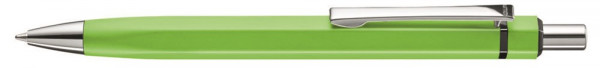 Metall-Druckkugelschreiber mit farbigem matt lackiertem, sechskantigem Aluminiumschaft. Metallclip, Metallspitze und Drücker in silber glänzend. Zierring in schwarz glänzend.